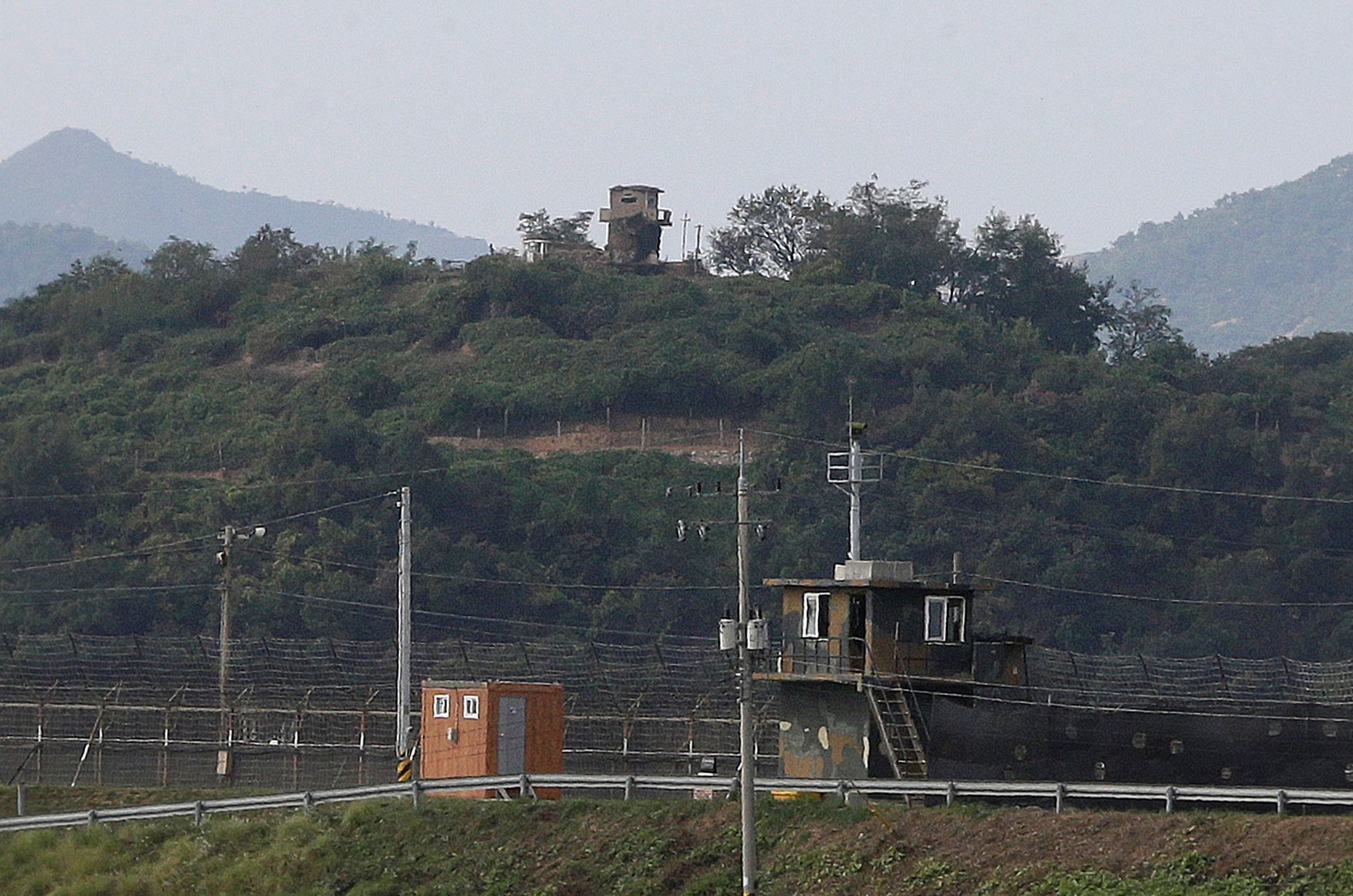 | © Ahn Young-joon/AP Photo Military guard posts of North Korea, rear, and South Korea, bottom, are seen in Paju, at the border with North Korea, South Korea, Thursday, Sept. 29, 2016. |