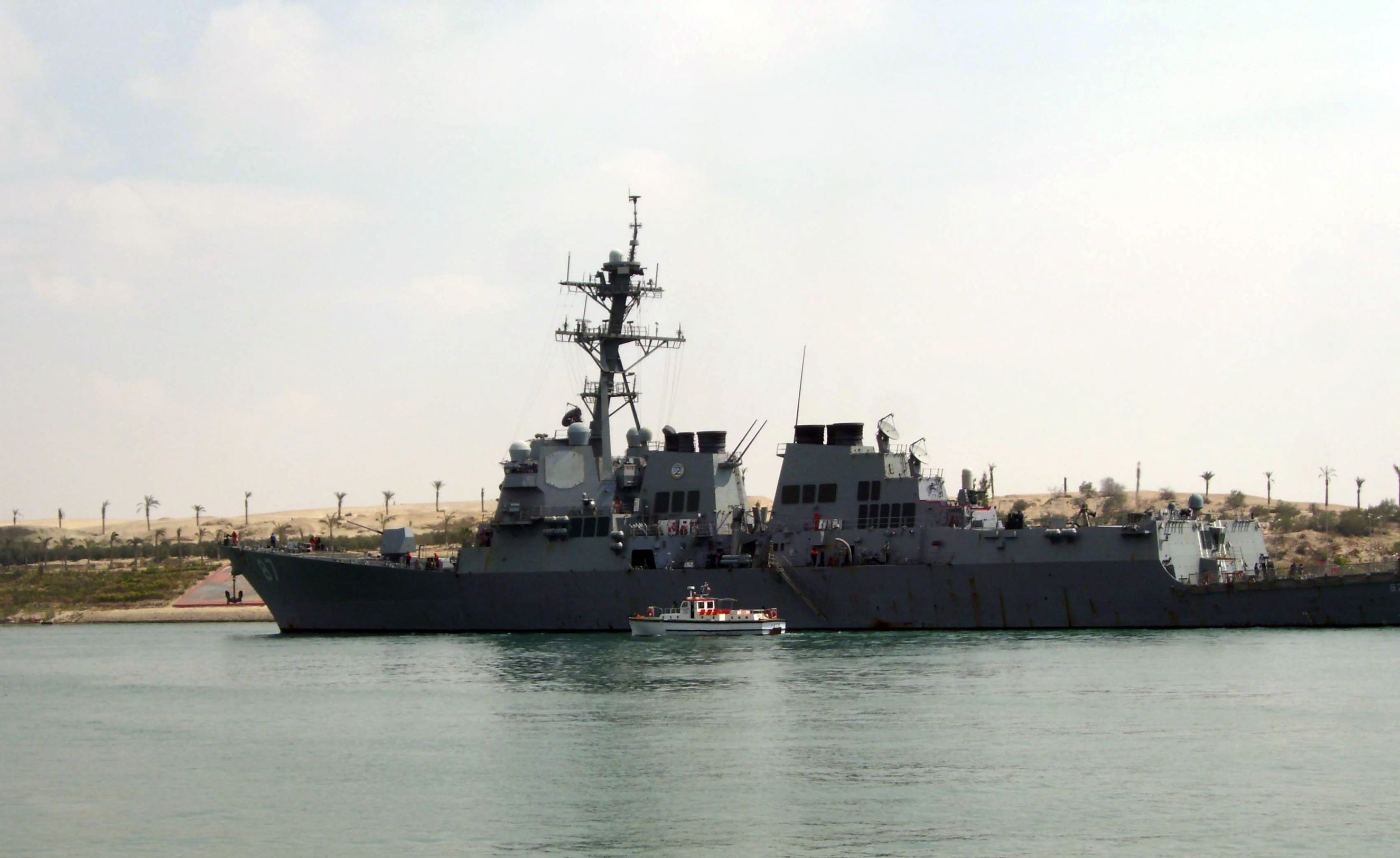 U.S. destroyer USS Mason sails in the Suez canal in Ismailia, Egypt, Saturday, March 12, 2011.Analysts with the Washington Institute for Near East Policy suggested in a report that the Houthis may have targeted the Emirati ship with an Iranian anti-shipping cruise missile, based on purported video of the attack.