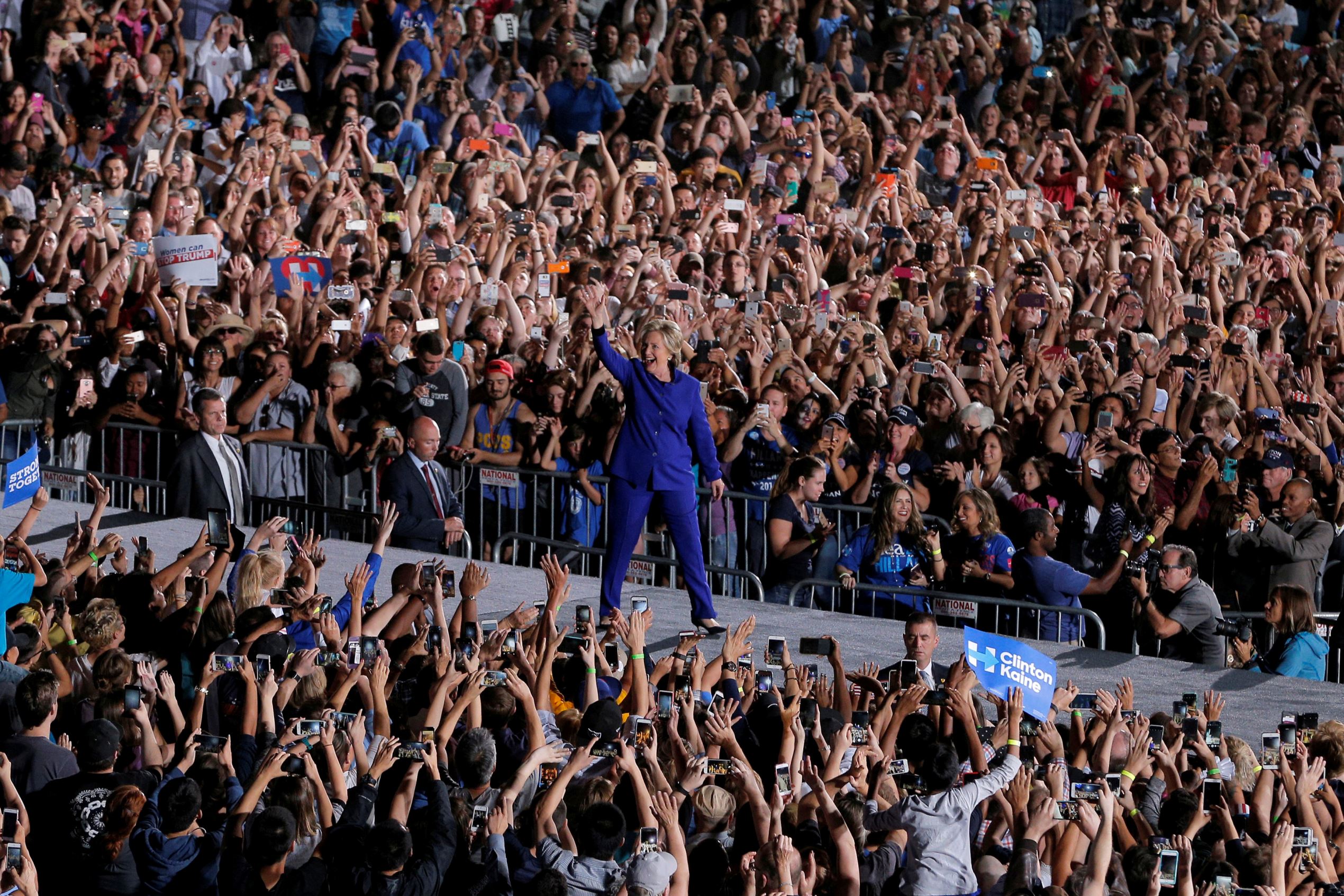 | © REUTERS/Brian Snyder Hillary Clinton takes the stage at a campaign rally at Arizona State University in Tempe, Arizona. |